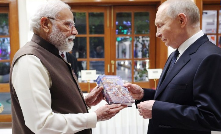 मॉस्को: प्रधानमंत्री नरेंद्र मोदी ने रूसी राष्ट्रपति व्लादिमीर पुतिन को रूसी भाषा में लिखी भगवद् गीता की एक प्रति भेंट कर भारत-रूस संबंधों में एक गहरा सांस्कृतिक और आध्यात्मिक आयाम जोड़ा है। यह प्रतीकात्मक उपहार, दोनों देशों के बीच रणनीतिक साझेदारी को रक्षा और ऊर्जा सौदों से परे ले जाते हुए, एक गहरे बौद्धिक जुड़ाव को स्थापित करता है। डिप्लोमेटिक गलियारों में इस उपहार को एक सूक्ष्म लेकिन मजबूत संकेत के रूप में देखा जा रहा है: भारत अपने पुराने और भरोसेमंद दोस्त रूस को करीब रखेगा, जबकि वह पश्चिमी देशों से भी दूरी नहीं बना रहा है।