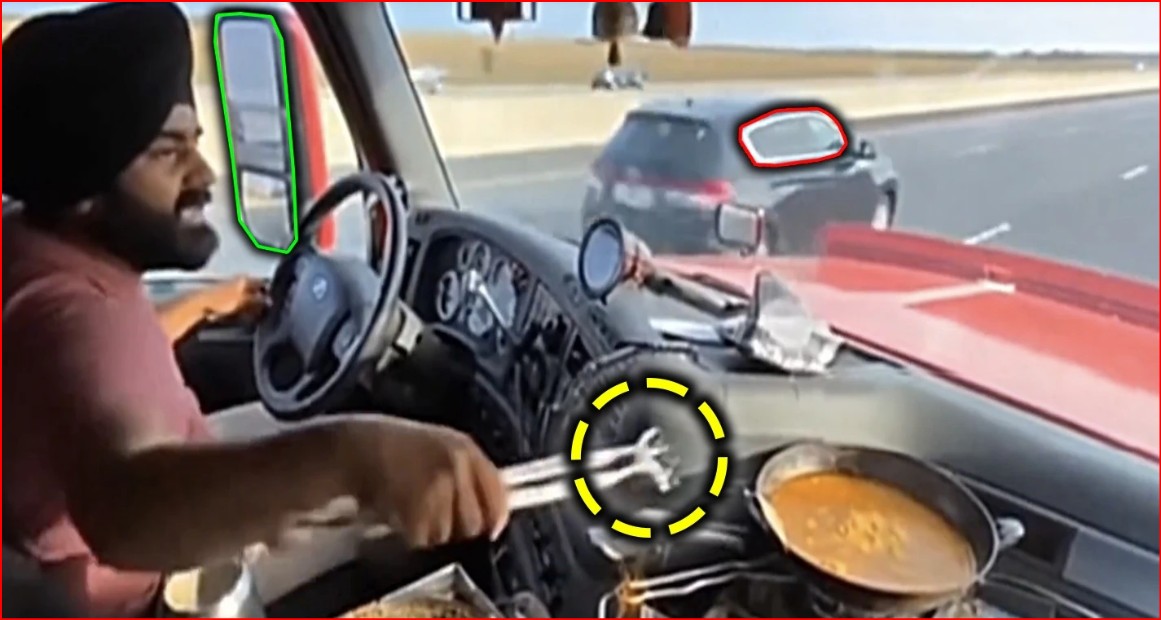 वायरल वीडियो दो क्लिप का मिश्रण है: पहली क्लिप में एक सिख युवक को वाहन चलाते हुए एक करछी से खाना पकाते हुए दिखाया गया है, जबकि दूसरी क्लिप में एक ट्रक को सड़क पर खड़ी अन्य गाड़ियों को जोरदार टक्कर मारते हुए दिखाया गया है। यह दावा किया जा रहा है कि पहली क्लिप में दिख रहा ड्राइवर ही जशनप्रीत सिंह है और खाना पकाने की गतिविधि ने दुर्घटना को जन्म दिया।