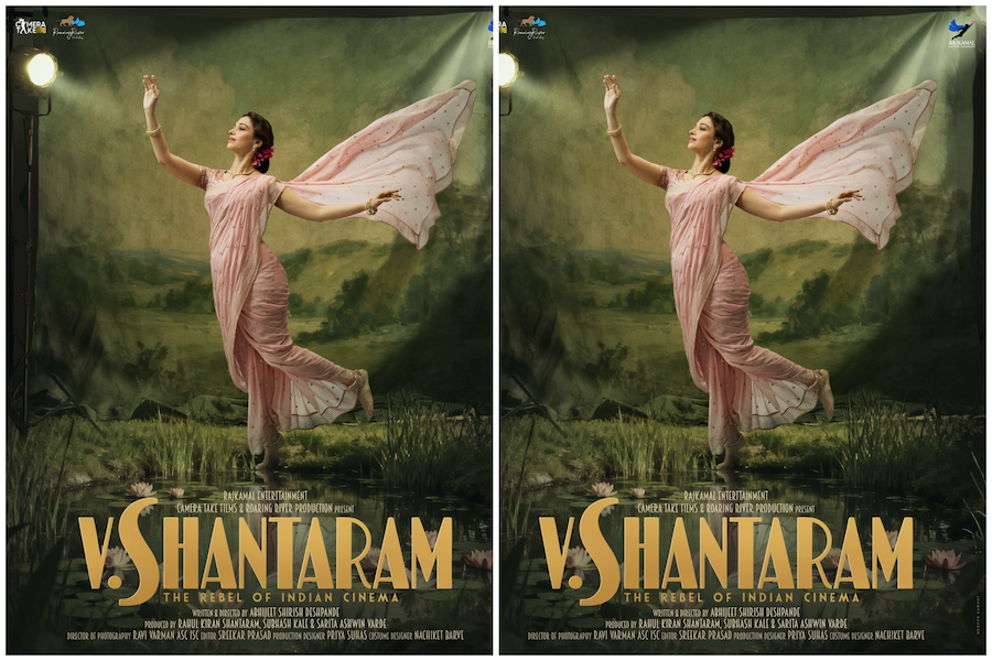 वी. शांताराम की बायोपिक से अब तमन्ना भाटिया का पहला लुक सामने आया है। तमन्ना फिल्म में जयश्री का किरदार निभा रही हैं, जो वी. शांतारामकी पत्नी और उनकी फिल्मों के पीछे की असली प्रेरणा के रूप में दिखायी जाएंगी।