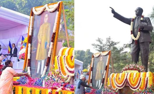 राष्ट्रपति द्रौपदी मुर्मू ने भी नई दिल्ली स्थित संसद भवन परिसर में डॉ. बीआर अंबेडकर की प्रतिमा पर पुष्पांजलि अर्पित की। राष्ट्रपति भवन के आधिकारिक 'एक्स' अकाउंट से जारी संदेश में बताया गया कि राष्ट्रपति ने श्रद्धा और सम्मान के साथ बाबासाहेब को नमन किया।