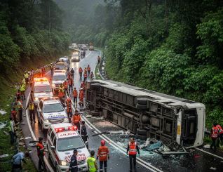 इंडोनेशिया में भयानक सड़क हादसा, कंक्रीट के बैरियर से भिड़ी बस, 1...