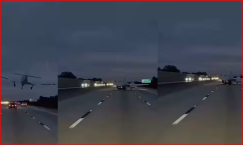 इसी बीच अचानक एक Beechcraft 55 छोटा विमान तेज़ी से नीचे उतरता हुआ दिखाई दिया। प्रत्यक्षदर्शियों के अनुसार, विमान पहले कुछ सेकंड तक सड़क से कुछ फीट ऊपर हवा में डगमगाता रहा, फिर अचानक तेजी से झपटते हुए 2023 मॉडल टोयोटा कैमरी के ऊपर जा गिरा।