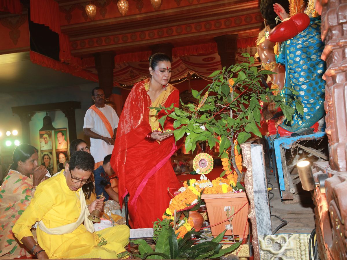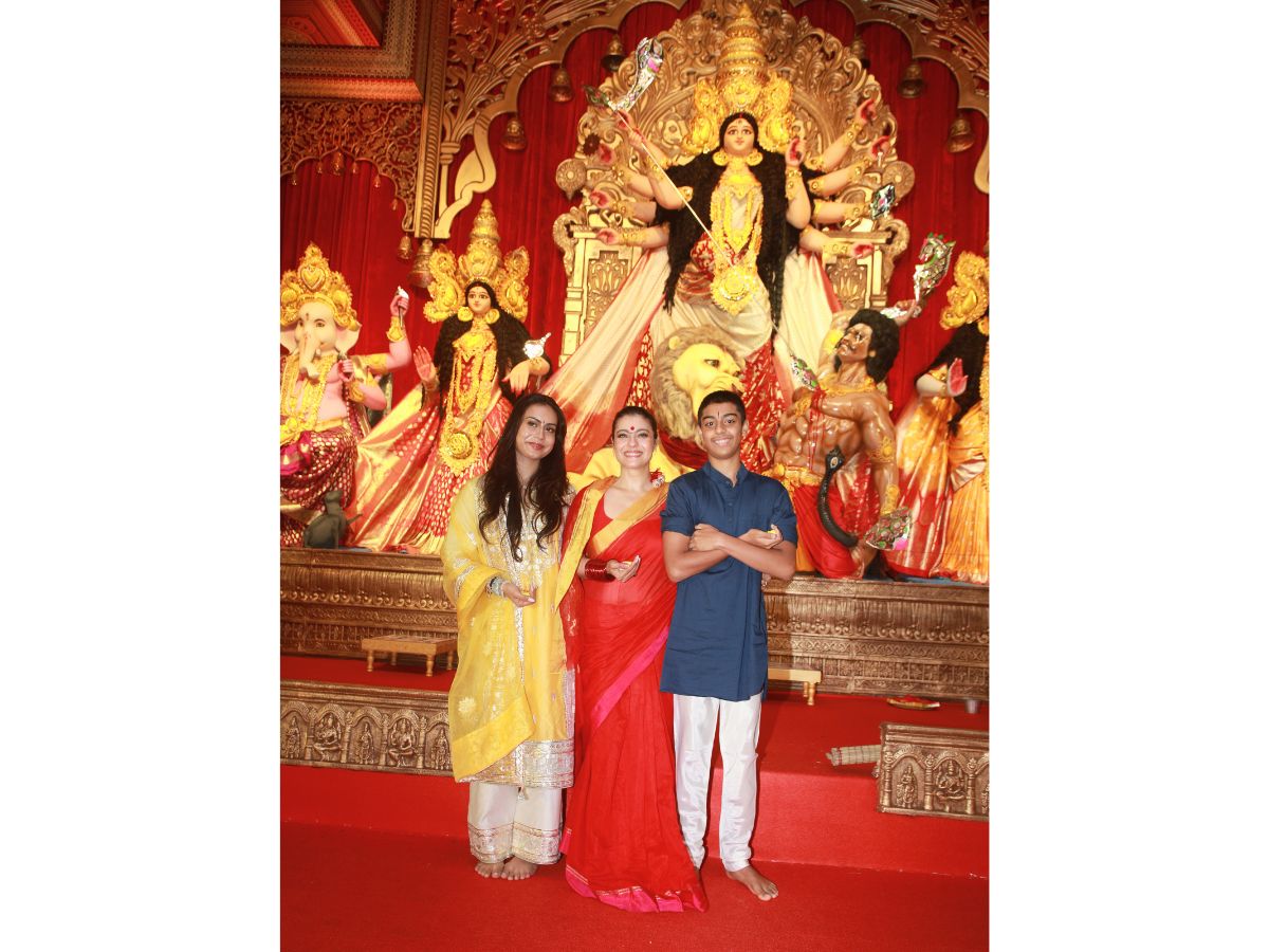 Kajol With Son Yug And Daughter Nysa Devgan Grace The North Bombay Sarbojanin Durga Puja
